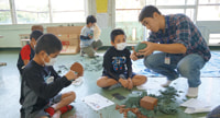 平成21年度2度目の開催は2月21日、本島国頭村立奥小学校をメイン会場に「織遊び教室」をはじめとする7教室を開講しました。同日夜には教員と学生による琉球芸能公演が開かれました。