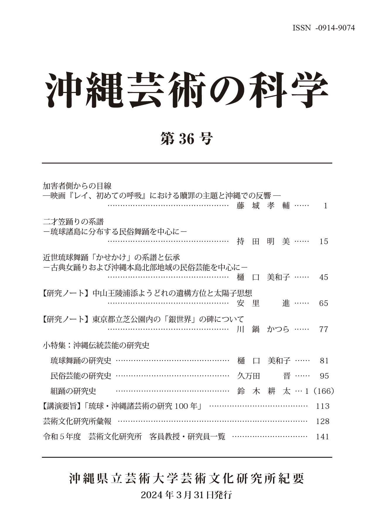 沖縄芸術の科学(第36号)2024年発刊