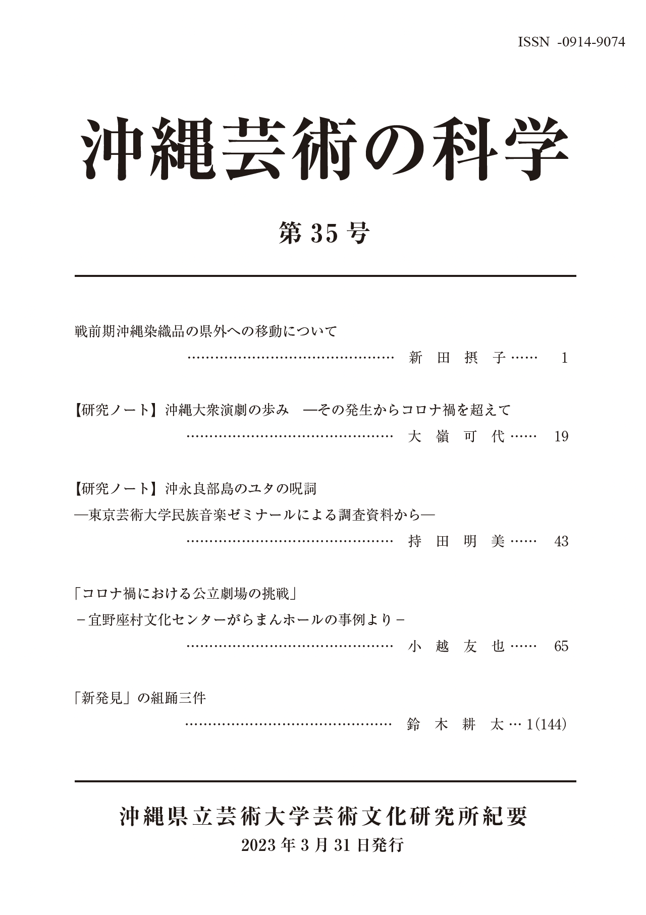 沖縄芸術の科学(第35号)2023年発刊