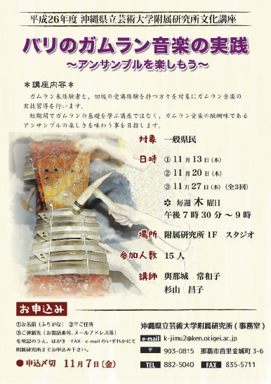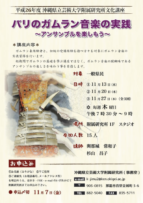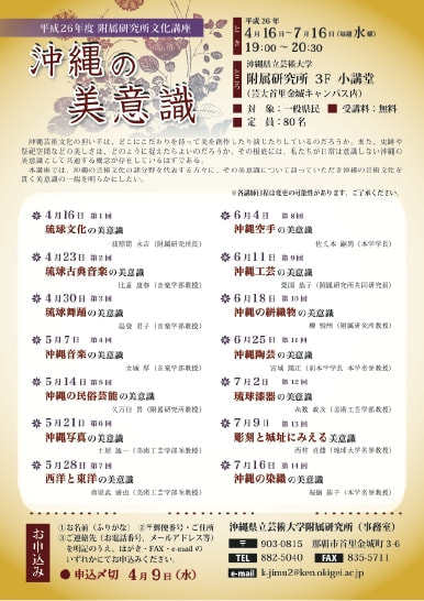 お問合せ:沖縄県立芸術大学附属研究所 事務室