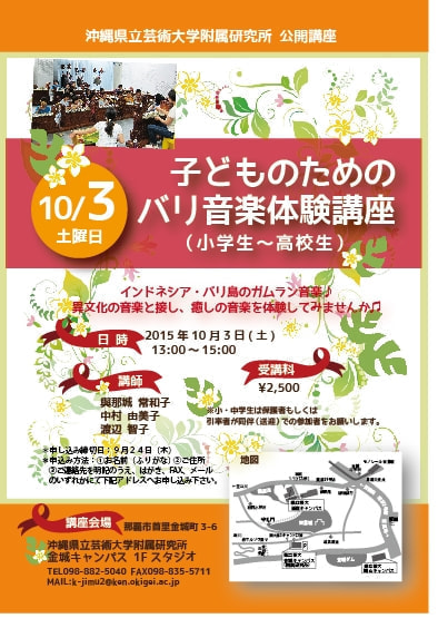 講座①「子どものためのバリ音楽体験講座(小学生〜高校生)」全1回