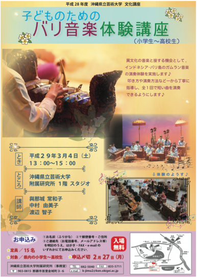 【ところ】2/23、3/2 沖縄県立芸大附属研究所