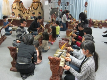 本講座では、ジャワとバリの二つのガムランの実技を通して、その違いを発見しましょう。楽器の構造、演奏方法、音楽の違いなど直に感じて下さい。