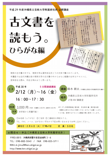TEL:098-882-5615  FAX:098-835-5711(県芸しまくとぅば事業事務局)