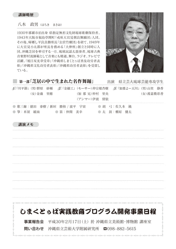 後援:沖縄県立芸術大学附属図書・芸術資料館